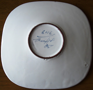 De siste er et trekantet fat som jeg ikke hadde størrelsen på fra før. Merket 573 HL87 HL. Nok et med dekor av Harald Lahn med størrelse 31,3 cm.